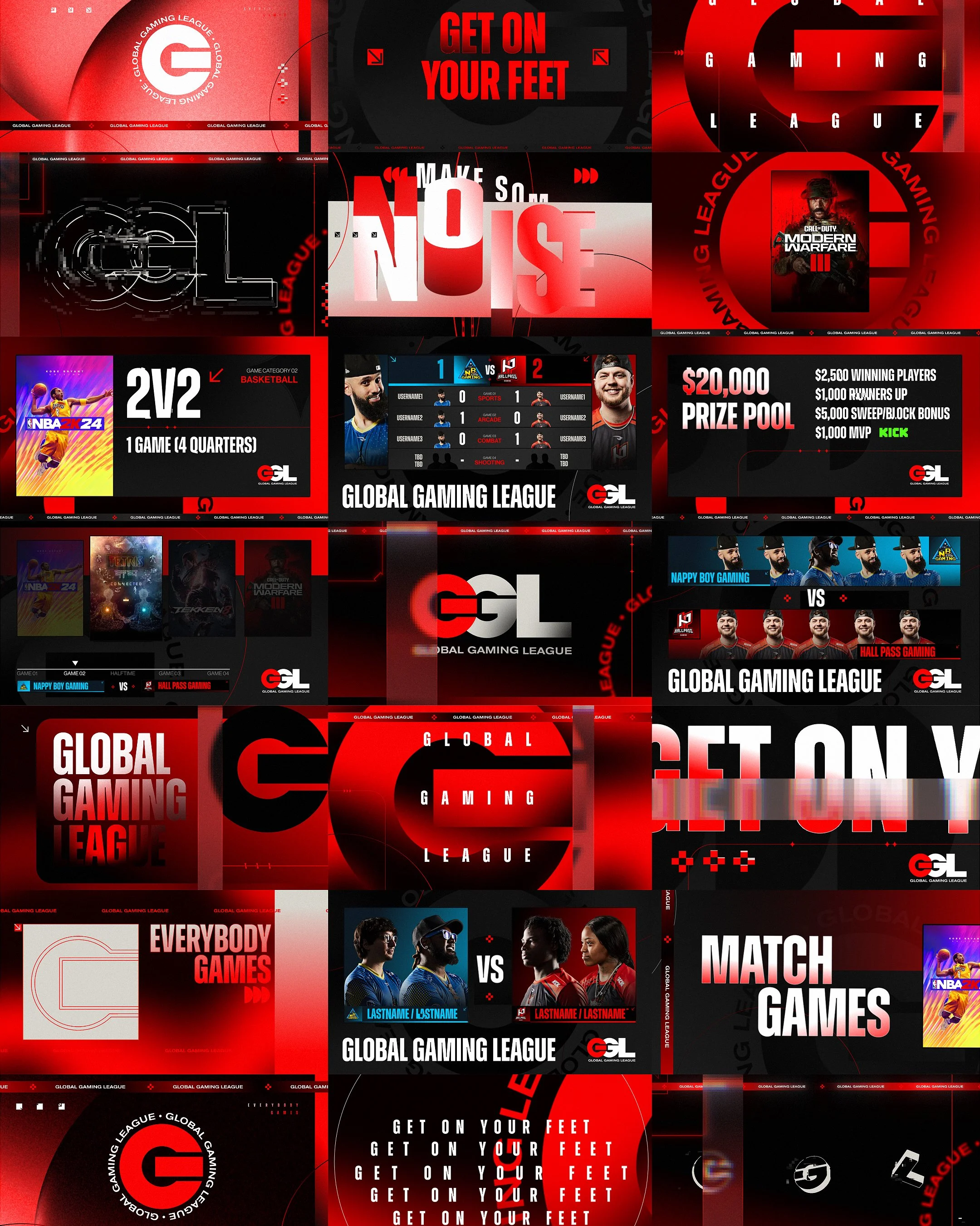 For season zero of the GGL, we worked alongside their internal team to develop a digital-first motion system for their live broadcast and in-venue content hub in Las Vegas, NV. The main visual anchors included shifting gradients, animated shapes and micro elements, pixelated glass effects, and sharp quick animations to glue it all together. This elaborate project required extensive rigging to bring this innovative live event to life, featuring over 30 different templated prompts.